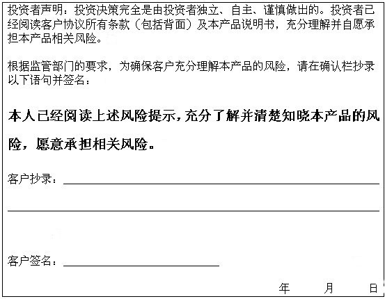 高资产净值客户请在下面抄录风险提示并签字: