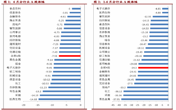1、债券市场 2010年2季度债券市场呈现一波三折, 4月初受到通胀预期影响,债市微幅调整,但是伴随股市回调,债市旋即进入新一轮上涨。6月下旬,受到季末因素影响,市场资金面十分紧张,短端收益率大幅上行,季度涨幅大幅收窄,2季度净价指数微幅上涨0.6%。 收益率曲线平坦化特征非常明显,2-10年国债平均上行10-15BP,而2年以内国债收益率上行幅度超过20bp。从类属来看,2季度信用债收益率基本走稳,受季末因素影响显著,短端上行超过30bp,长端变化不大。一级市场火爆程度有所下降,但是鲜有折价,市场成交量略有下降,双边价差有所扩大 2、股票市场 经历了4月中以来市场的大幅下跌后,进入6月份市场开始走稳,截至 6月 28日 之前,市场表现为以2550点为中轴振幅在100点左右的窄幅震荡,其中大盘股表现平稳,小盘股波动活跃,呈倒V型走势,6月中下旬小盘题材的补跌明显。本次市场再次掉头向下,本质上是市场对经济放缓,甚至恶化的担忧。 分析行业看,金融地产及防御性品种食品饮料、商业贸易跌幅较小,医药、采掘、有色、农林牧渔跌幅居前。