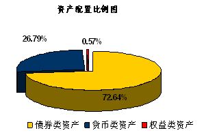 大类资产配置中,债券类资产市值33483.3万元,占净值比重为61.44%,权益类资产市值为5433.4万元,占净值比重为9.97%;现金类资产市值为15564.2万元,占净值比重为28.59%。